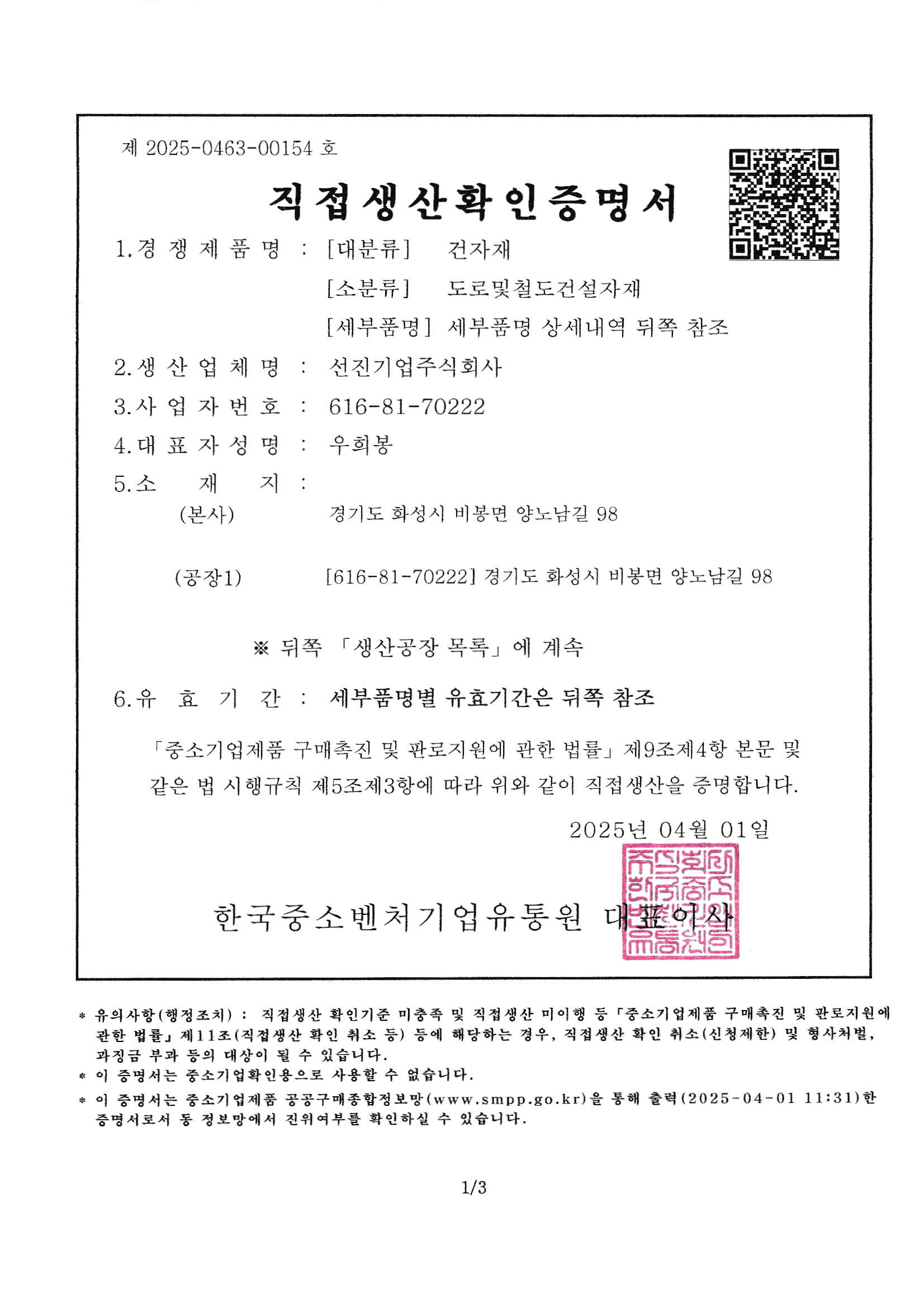 Membership certificate of the Korea Metal Barrier Associatio…