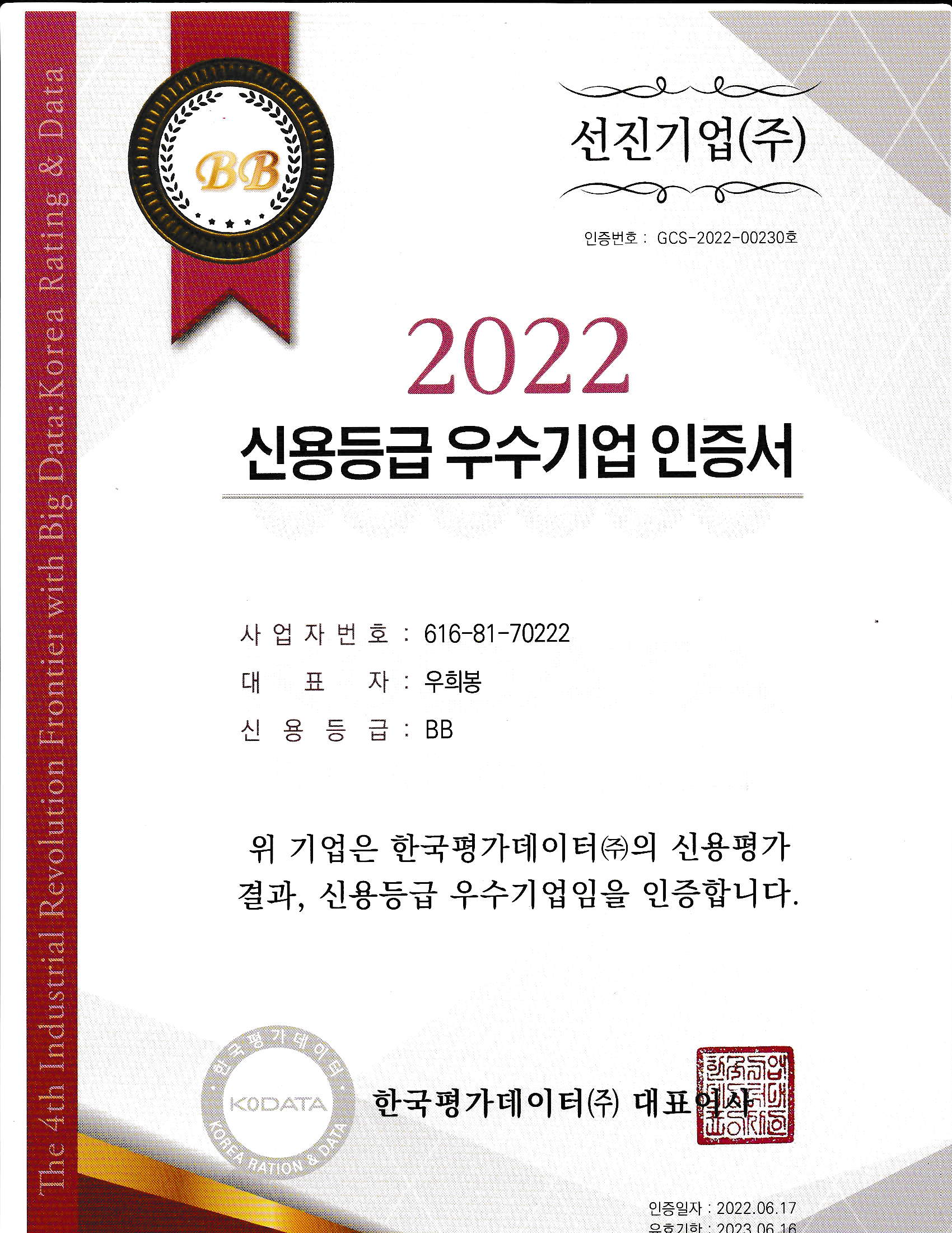 Certificate of excellent credit rating company
