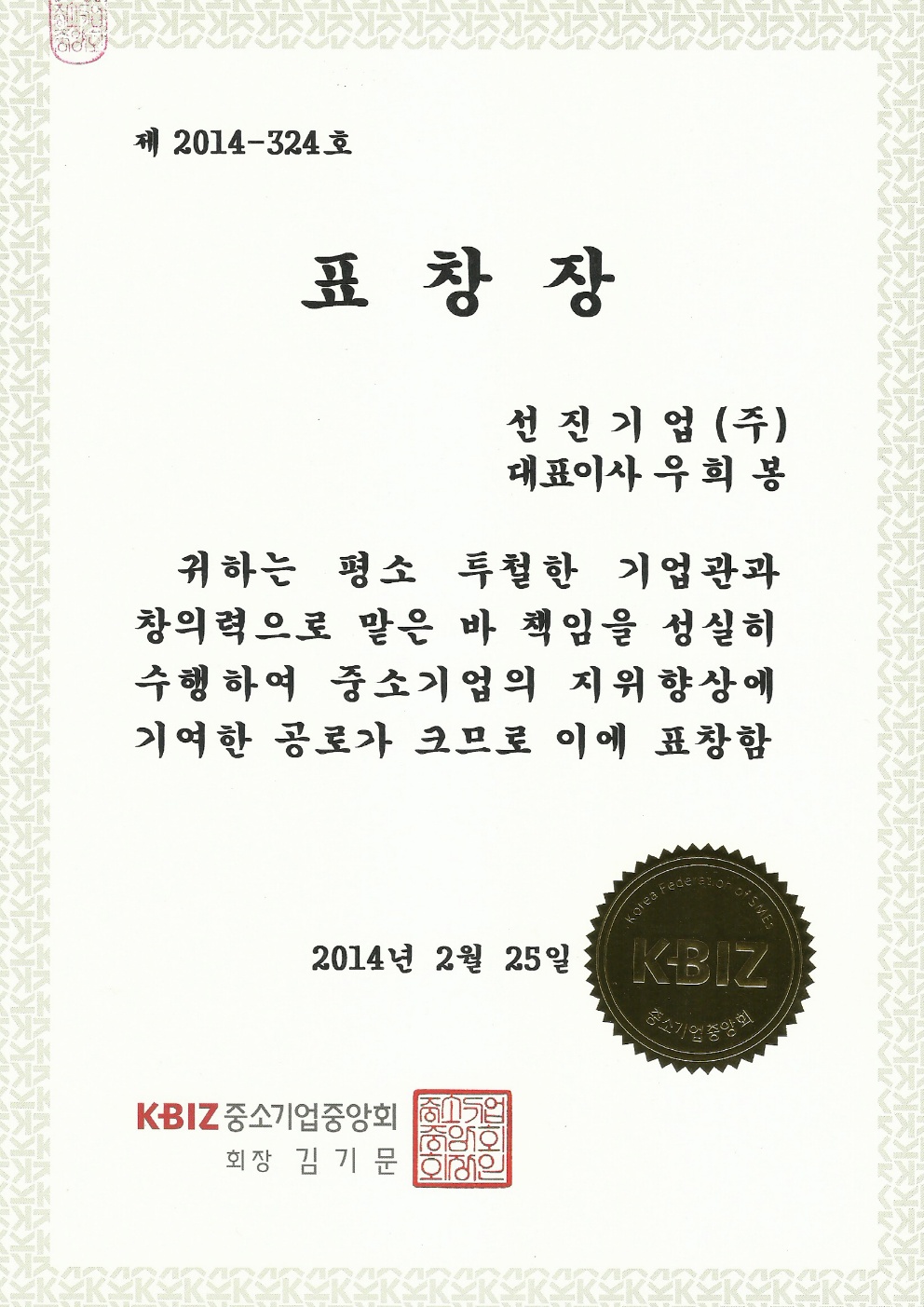 Korea Federation of Small and Medium Business Commendation A…