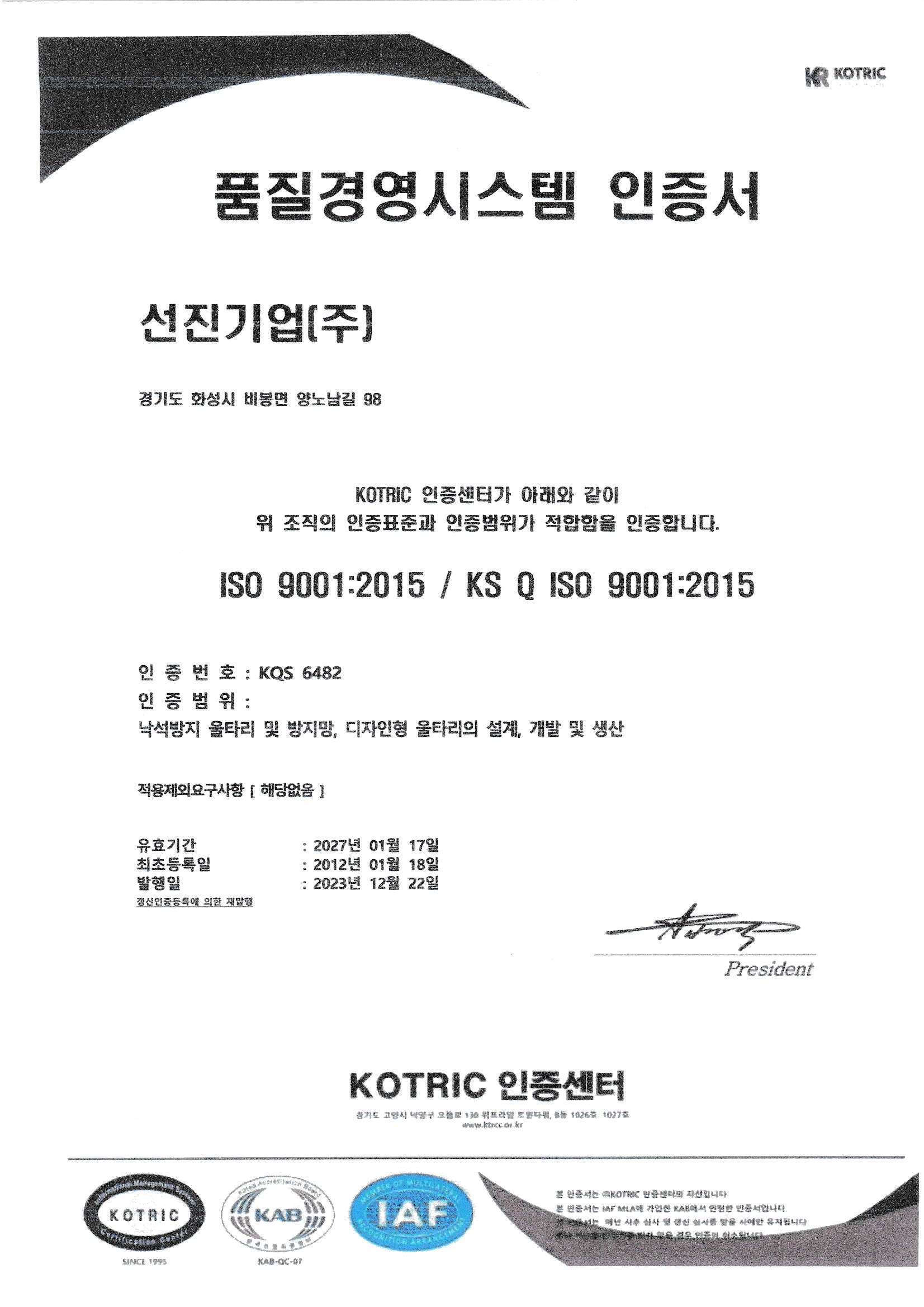 Quality Management System Certificate